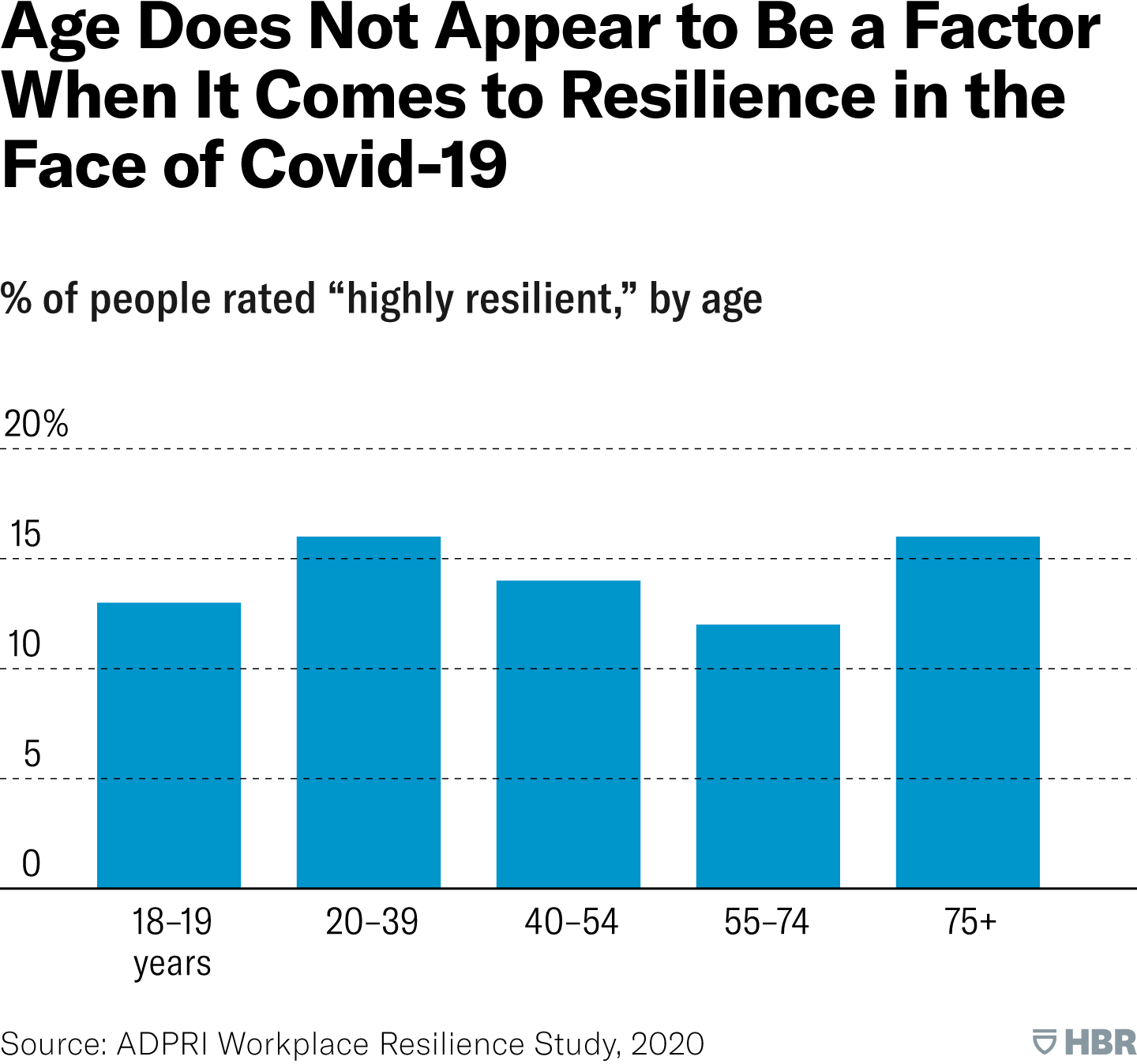 Resilience levels are not connected to gender — men and women around the world have almost exactly the same levels of resilience. Nor does age seem to be a significant factor.